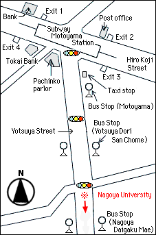 (1) Symposion is situated in Nagoya University, Higashiyama campus. It is nearby Toyoda Auditorium.